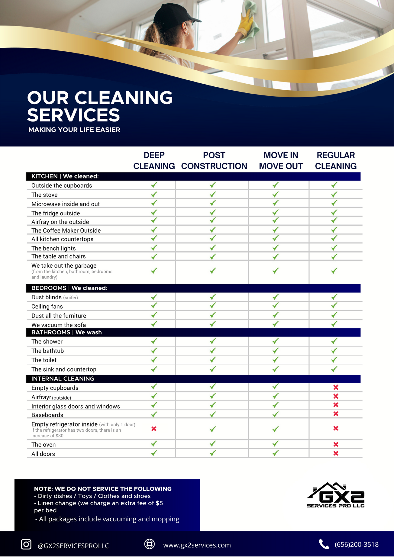 Stay connected with GX2 House Cleaning Services. Follow us on our social platforms for updates, cleaning tips, and special offers.